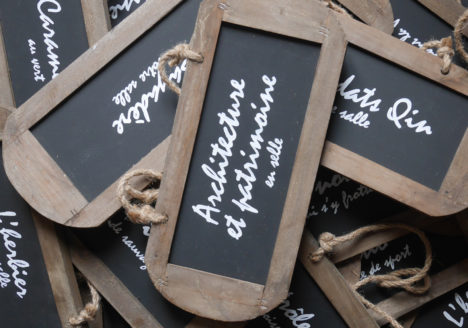 Série d’ardoises signalétique réalisées pour Chateauform’ à Persan (95).