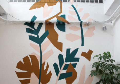 Grande fresque réalisée pour le nouvel espace Morning Coworking à République, Paris 10ème. Création graphique par Morning coworking.
