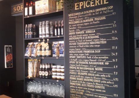 Carte de prix pour l’épicerie chez Sorella, Paris 16