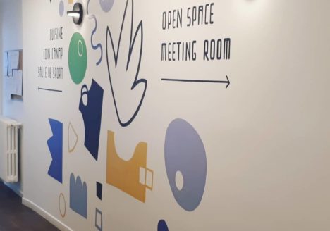 Fresques décoratives et signalétique pour les bureaux de Scibids, Paris 8e