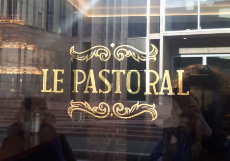 Vitrine peinte et dorée à la main pour Le Pastoral à Pantin