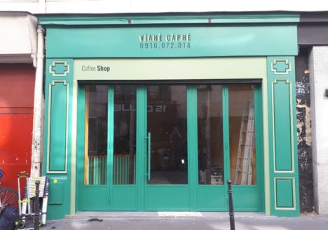 Devanture peinte pour le café viêt Viahé Caphé, Paris 11ème
