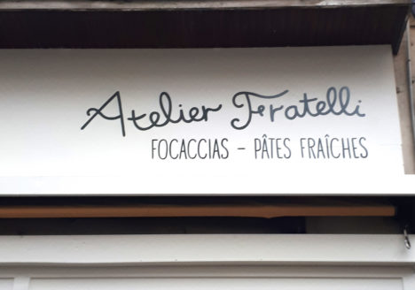 Enseigne peinte pour l’Atelier Fratelli, rue des Pyrénées à Paris